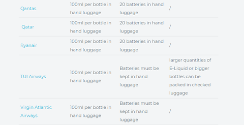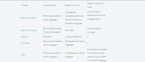 Depending on the airways you fly with, the specific rules of battery quantities and vape juice allowance may be different in detail. For your convenience, we make a list of major airlines in the UK below: