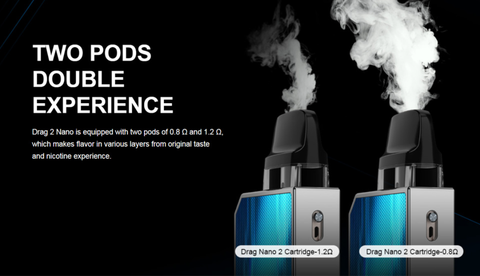 The cartridge is visible and adopts top-filling system, with unprecedented flavor by its built-in 0.8Ω and 1.2Ω Coil. It inherits the good taste and quality of VINCI POD. It solves the juice leakage problem of the orignal Drag Nano. No worry about juice leakage any more.