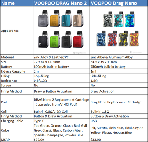 VOOPOO DRAG Nano 2 vs VOOPOO DRAG Nano